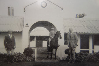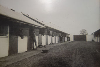 Captain Macllwaine came down from Yorkshire in the 1930's; along side the arable he dealt in horses, in his best year he sold 365. The pictures below show the yard as it was and Captain Macllwaine is on the right by the horse.